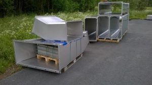 Valmistamiamme terästuotteita lähdössä kuumasinkkiin.